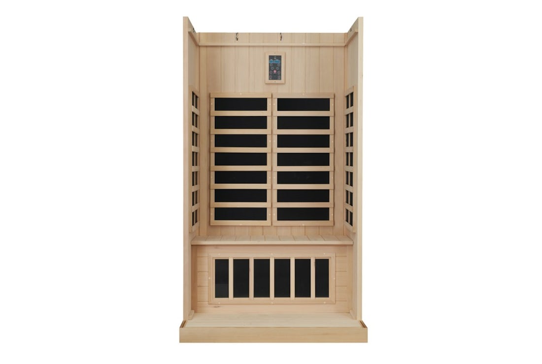 Most saunas use less expensive ceramic heaters. Not the Linear™, it uses exclusive Vortex carbon fibre elements that are more efficient and have a low EMF output. Due to the large flat surface, the Vortex carbon fibre elements distribute heat more evenly and prevent any ‘hot spots’ from occurring.