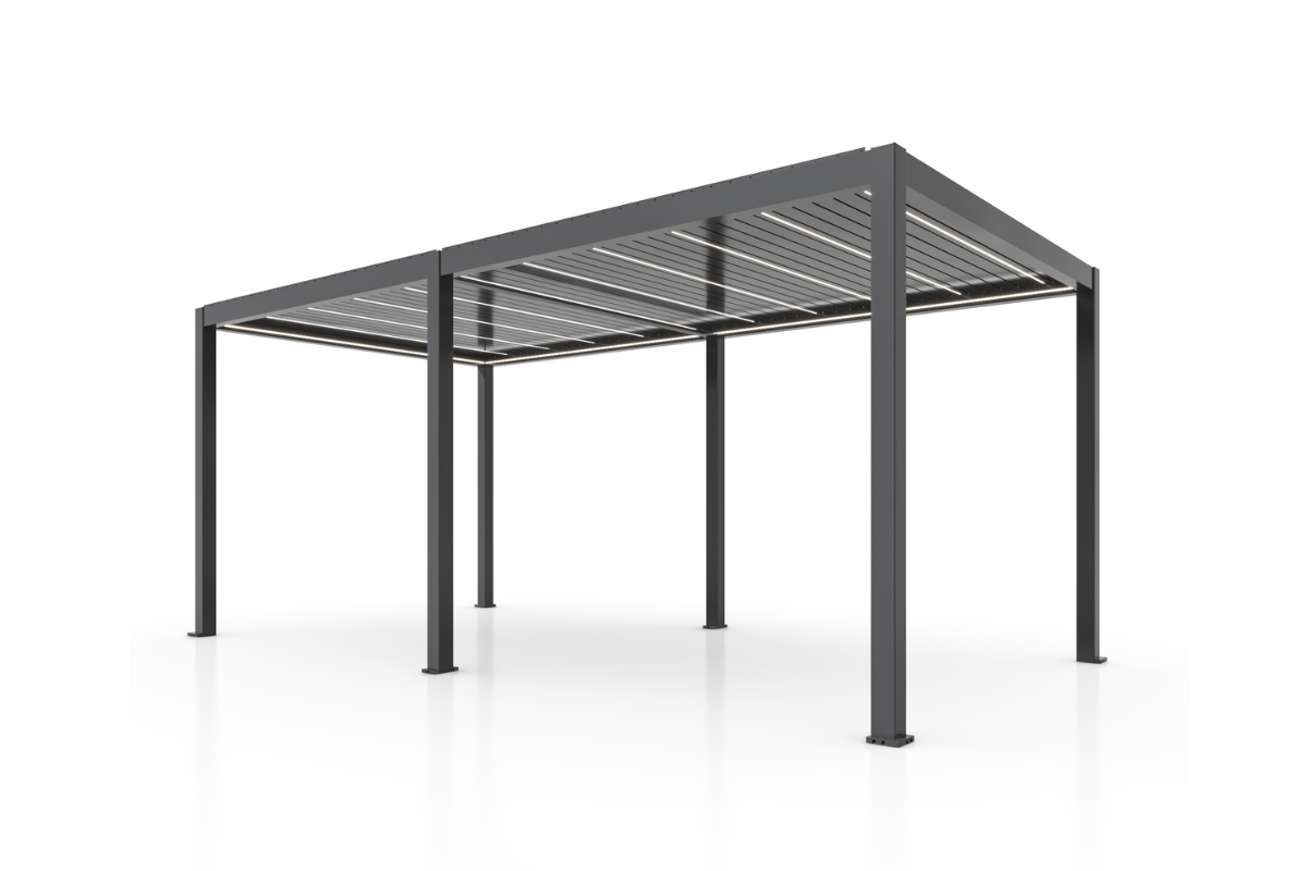 Shade and protect your family with this Vortex Pergola™ featuring remote-controlled motorised louvres for easy operation and LED lighting for night entertaining.