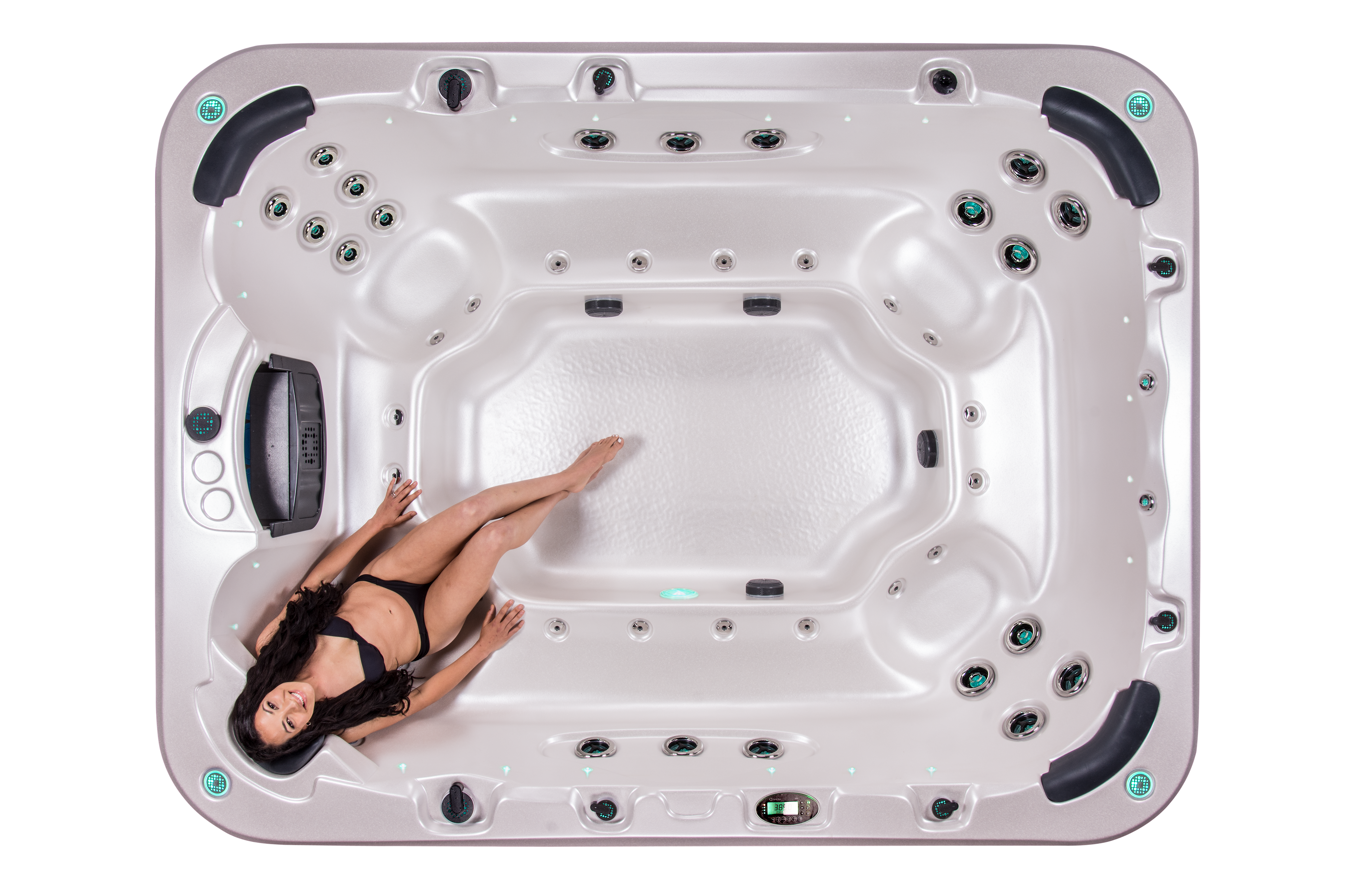 Hydroglow™ backlit laminar jets Laminar jets create perfect streams of backlit water giving a gentle visual display. The jets operate independently of the hydrotherapy jets, so they can be turn your spa into an impressive light display in your backyard. | — |